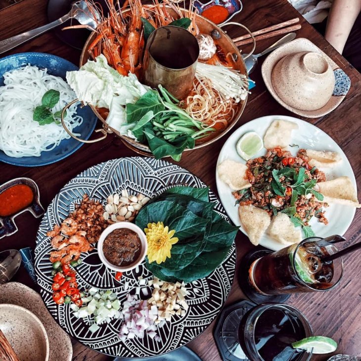 Đến đây mà bỏ lỡ lẩu Thái thì quả thật đáng tiếc bởi hương vị đậm đà, hòa quyện các loại gia vị đặc trưng khác nhau: ớt cay nồng, lá chanh thanh nhẹ, gừng tươi tê tê cùng với hương vị ngọt của nước gà hầm và vị chua của chanh tươi. Hương vị lôi cuốn và đặc biệt ăn hoài mà không hề ngán.